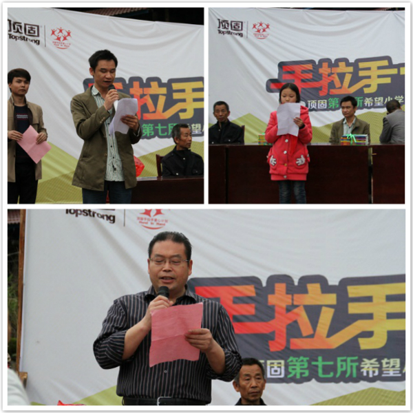 仪式在绵绵春雨中拉开了序幕,盛燕顶固希望小学校长陈少波先生先生首先上台致辞,陈校长表示:盛燕顶固希望小学建立后,将不断扩充生源、教学设施及师资力量,把盛燕希望小学办成一所环境优美、质量过硬、社会满意的学校,让顶固盛燕希望小学这颗山区教育璀璨的明珠在会同鹰嘴界国家级自然保护区永远闪闪发亮。