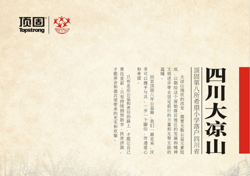 2009年,顶固手拉手爱心助学计划正式启动。数年来,顶固坚守承诺:每年捐建或修缮一所希望小学,截止目前,顶固先后于云南、贵州、青海、河南、江西、甘肃、湖南捐建了七所希望小学。金秋九月,顶固第八所希望小学落户四川凉山州。诚邀您参与“爱让索玛花开——顶固第八所希望小学四川站奠基典礼”,一起为山区孩子送温暖,传递希望!